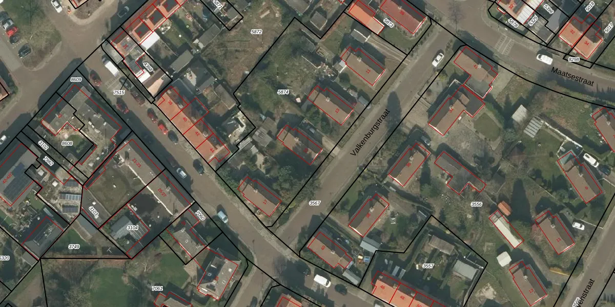 Valkenburgstraat 15 is gelegen op kadastraal perceel UDN00M5874. Deze kadastrale aanduiding is uniek en wordt gebruikt door het Kadaster om eigendomsrechten en andere zakelijke rechten vast te leggen. Het perceel maakt onderdeel uit van de kadastrale gemeente Uden.