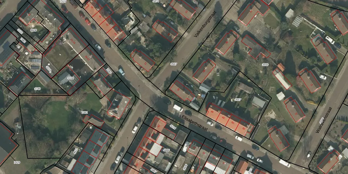 Het perceel waarop Valkenburgstraat 40 staat heeft een oppervlakte van 5650 m². Dit is een zeer groot perceel. De perceeloppervlakte wordt geregistreerd door het Kadaster. Gedetailleerde informatie over de maten van dit perceel kunt u vinden in het rapport Kadastrale kaart met maatvoering van Valkenburgstraat 40.