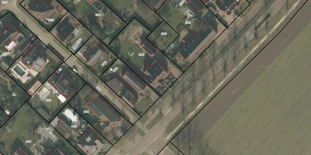 Het perceel waarop Veghelsedijk 12-A staat heeft een oppervlakte van 1093 m². Dit is een zeer groot perceel. De perceeloppervlakte wordt geregistreerd door het Kadaster. Gedetailleerde informatie over de maten van dit perceel kunt u vinden in het rapport Kadastrale kaart met maatvoering van Veghelsedijk 12-A.
