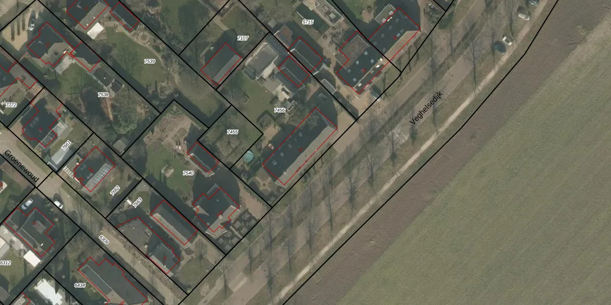 Veghelsedijk 14 is gelegen op kadastraal perceel UDN00M7456. Deze kadastrale aanduiding is uniek en wordt gebruikt door het Kadaster om eigendomsrechten en andere zakelijke rechten vast te leggen. Het perceel maakt onderdeel uit van de kadastrale gemeente Uden.