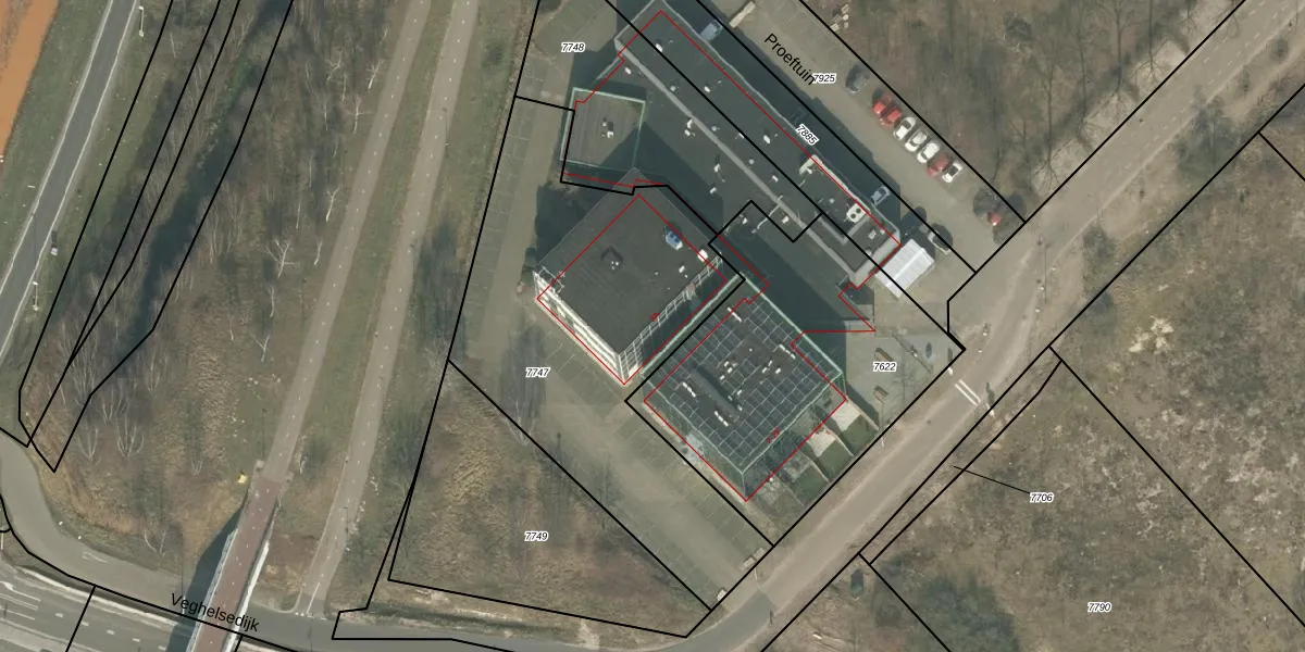 Het perceel waarop Veghelsedijk 2-A staat heeft een oppervlakte van 1808 m². Dit is een zeer groot perceel. De perceeloppervlakte wordt geregistreerd door het Kadaster. Gedetailleerde informatie over de maten van dit perceel kunt u vinden in het rapport Kadastrale kaart met maatvoering van Veghelsedijk 2-A.