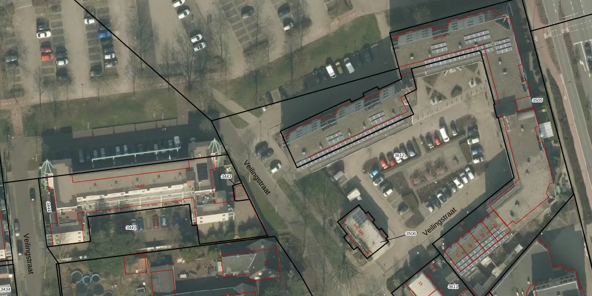 Het perceel waarop Veilingstraat 115 staat heeft een oppervlakte van 3048 m². Dit is een zeer groot perceel. De perceeloppervlakte wordt geregistreerd door het Kadaster. Gedetailleerde informatie over de maten van dit perceel kunt u vinden in het rapport Kadastrale kaart met maatvoering van Veilingstraat 115.