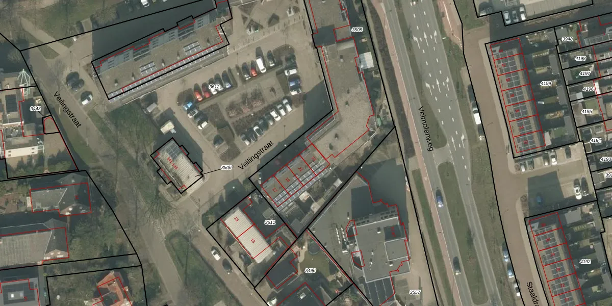 Het perceel waarop Veilingstraat 23 staat heeft een oppervlakte van 3048 m². Dit is een zeer groot perceel. De perceeloppervlakte wordt geregistreerd door het Kadaster. Gedetailleerde informatie over de maten van dit perceel kunt u vinden in het rapport Kadastrale kaart met maatvoering van Veilingstraat 23.