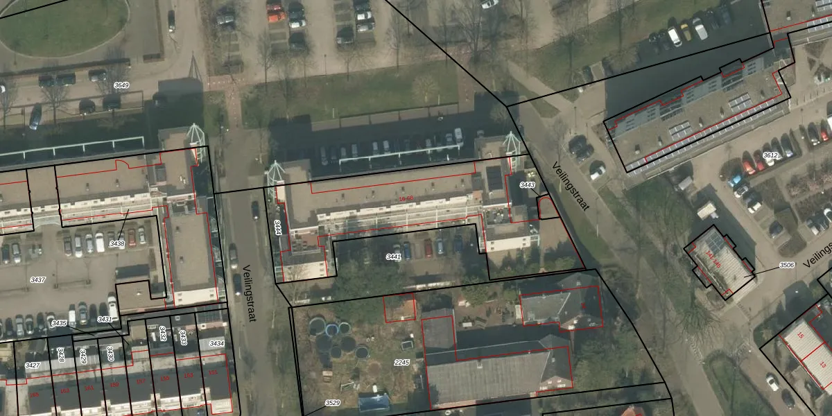 Het perceel waarop Veilingstraat 40 staat heeft een oppervlakte van 1407 m². Dit is een zeer groot perceel. De perceeloppervlakte wordt geregistreerd door het Kadaster. Gedetailleerde informatie over de maten van dit perceel kunt u vinden in het rapport Kadastrale kaart met maatvoering van Veilingstraat 40.