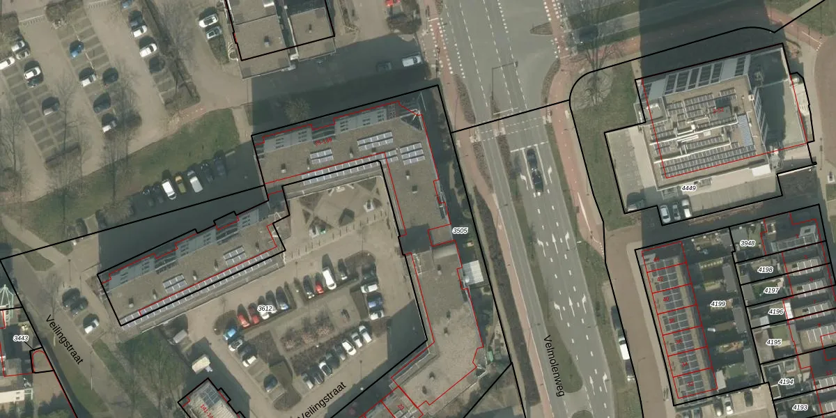 Het perceel waarop Veilingstraat 59 staat heeft een oppervlakte van 3048 m². Dit is een zeer groot perceel. De perceeloppervlakte wordt geregistreerd door het Kadaster. Gedetailleerde informatie over de maten van dit perceel kunt u vinden in het rapport Kadastrale kaart met maatvoering van Veilingstraat 59.