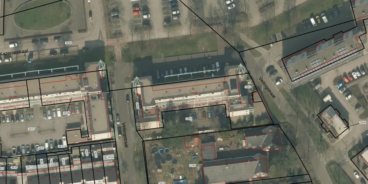 Het perceel waarop Veilingstraat 76 staat heeft een oppervlakte van 1407 m². Dit is een zeer groot perceel. De perceeloppervlakte wordt geregistreerd door het Kadaster. Gedetailleerde informatie over de maten van dit perceel kunt u vinden in het rapport Kadastrale kaart met maatvoering van Veilingstraat 76.