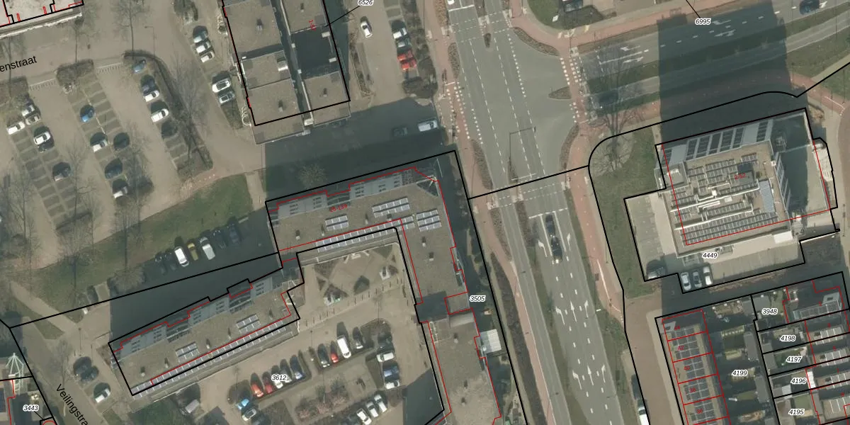 Het perceel waarop Veilingstraat 97 staat heeft een oppervlakte van 3048 m². Dit is een zeer groot perceel. De perceeloppervlakte wordt geregistreerd door het Kadaster. Gedetailleerde informatie over de maten van dit perceel kunt u vinden in het rapport Kadastrale kaart met maatvoering van Veilingstraat 97.
