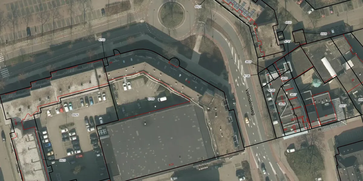 Het perceel waarop Velmolenweg 1 staat heeft een oppervlakte van 4016 m². Dit is een zeer groot perceel. De perceeloppervlakte wordt geregistreerd door het Kadaster. Gedetailleerde informatie over de maten van dit perceel kunt u vinden in het rapport Kadastrale kaart met maatvoering van Velmolenweg 1.