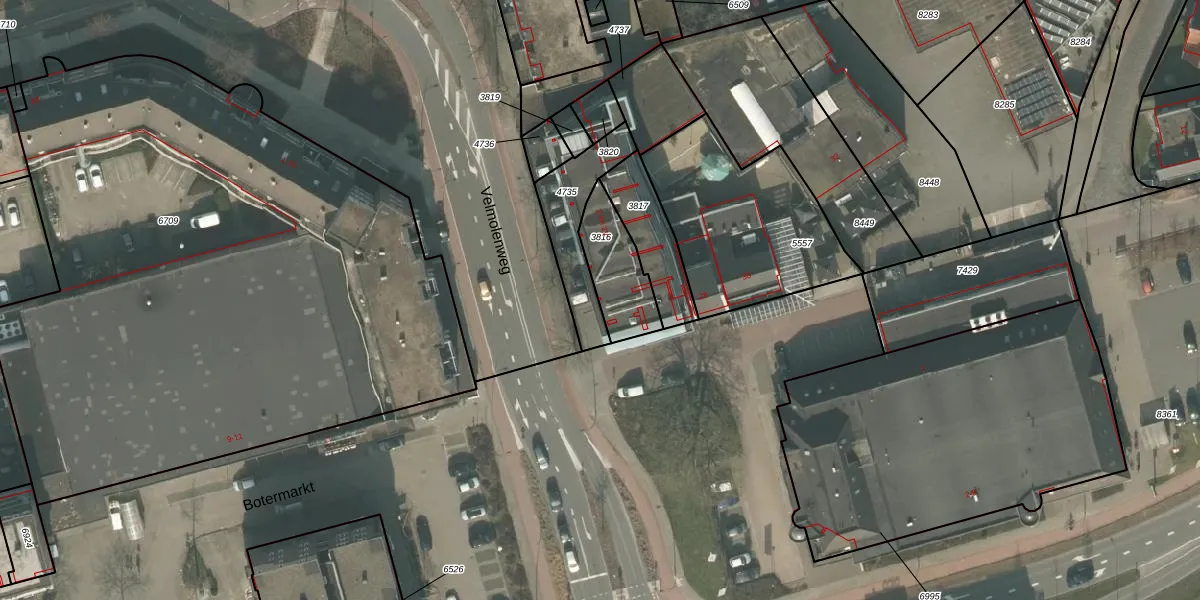 Velmolenweg 2-F is gelegen op kadastraal perceel UDN00M3816. Deze kadastrale aanduiding is uniek en wordt gebruikt door het Kadaster om eigendomsrechten en andere zakelijke rechten vast te leggen. Het perceel maakt onderdeel uit van de kadastrale gemeente Uden.
