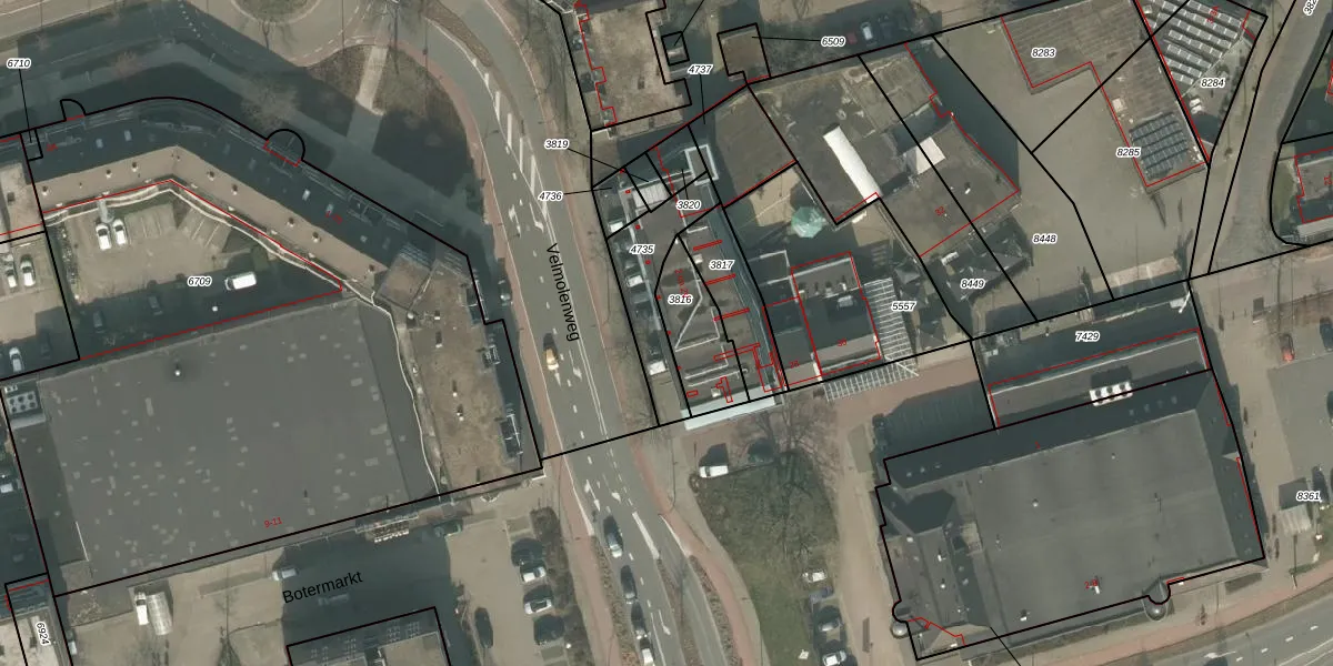 Velmolenweg 2-L is gelegen op kadastraal perceel UDN00M4735. Deze kadastrale aanduiding is uniek en wordt gebruikt door het Kadaster om eigendomsrechten en andere zakelijke rechten vast te leggen. Het perceel maakt onderdeel uit van de kadastrale gemeente Uden.