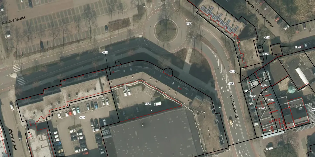 Het perceel waarop Velmolenweg 49 staat heeft een oppervlakte van 4016 m². Dit is een zeer groot perceel. De perceeloppervlakte wordt geregistreerd door het Kadaster. Gedetailleerde informatie over de maten van dit perceel kunt u vinden in het rapport Kadastrale kaart met maatvoering van Velmolenweg 49.
