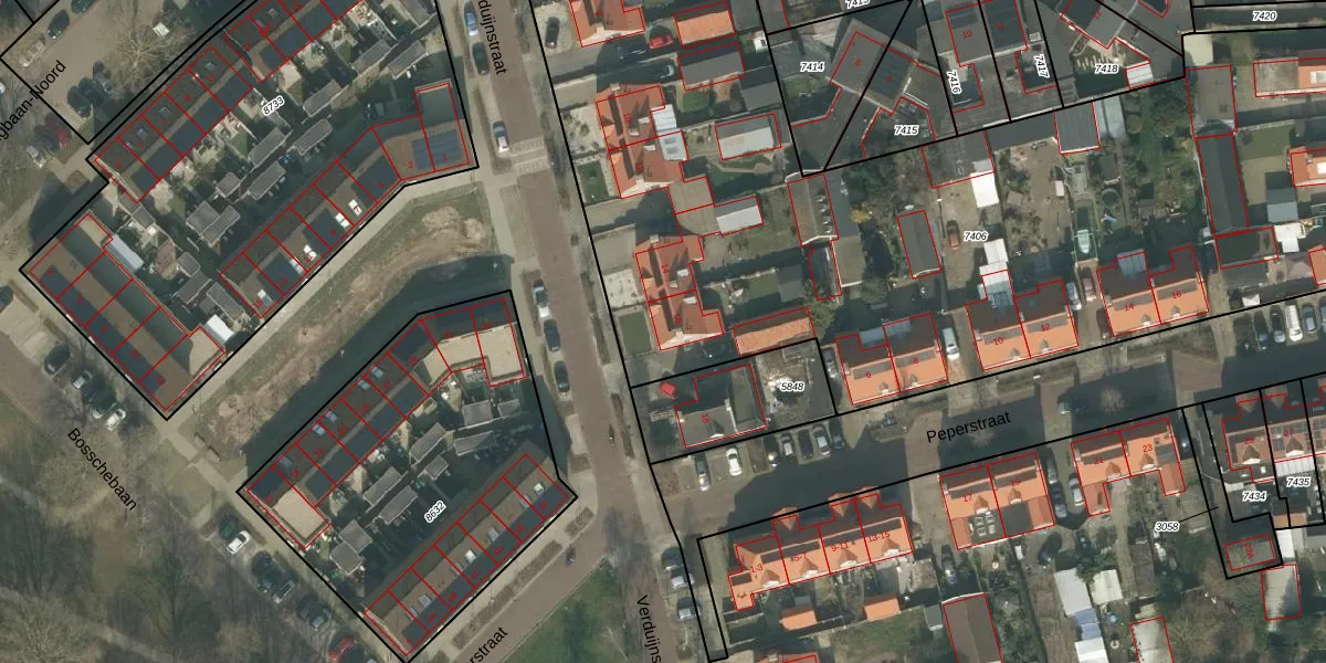 Verduijnstraat 16 is gelegen op kadastraal perceel UDN00M7406. Deze kadastrale aanduiding is uniek en wordt gebruikt door het Kadaster om eigendomsrechten en andere zakelijke rechten vast te leggen. Het perceel maakt onderdeel uit van de kadastrale gemeente Uden.