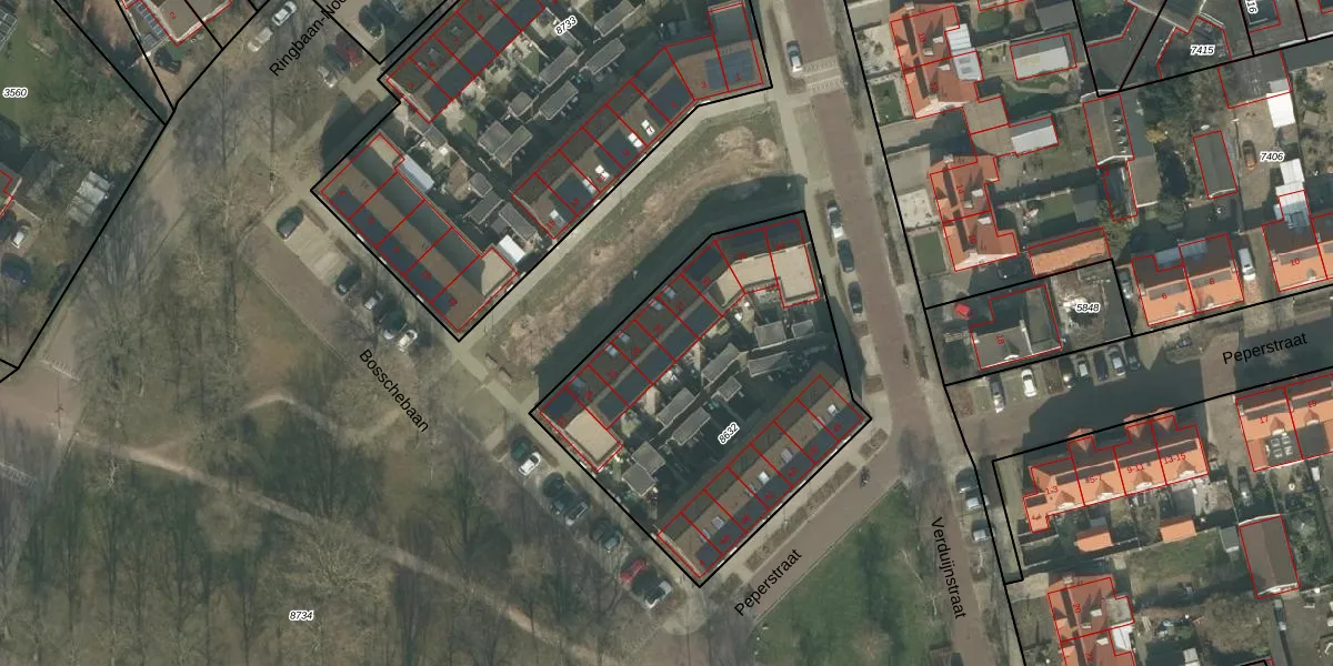 Het adres is gelegen op perceel 8632 in de sectie M en de kadastrale gemeente Uden. De kadastrale aanduiding is aldus UDN00-M-8632. Het perceel is kleiner dan gemiddeld in Uden. Het perceel is 1565 m² groot, terwijl het gemiddelde ligt op 3241,42 m². Het grootste perceel in de kadastrale gemeente is 1,06 km². Het kleinste perceel heeft een oppervlakte van 0 m². Er zijn 16 adressen aanwezig op het perceel. De laatste wijziging in het de Basisregistratie Kadaster (BRK) was op 15-11-2024.