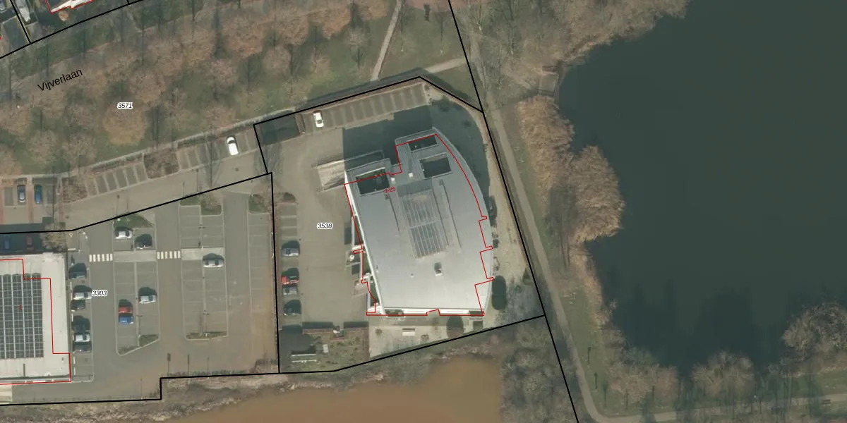 Het perceel waarop Vijverlaan 9 staat heeft een oppervlakte van 3444 m². Dit is een zeer groot perceel. De perceeloppervlakte wordt geregistreerd door het Kadaster. Gedetailleerde informatie over de maten van dit perceel kunt u vinden in het rapport Kadastrale kaart met maatvoering van Vijverlaan 9.