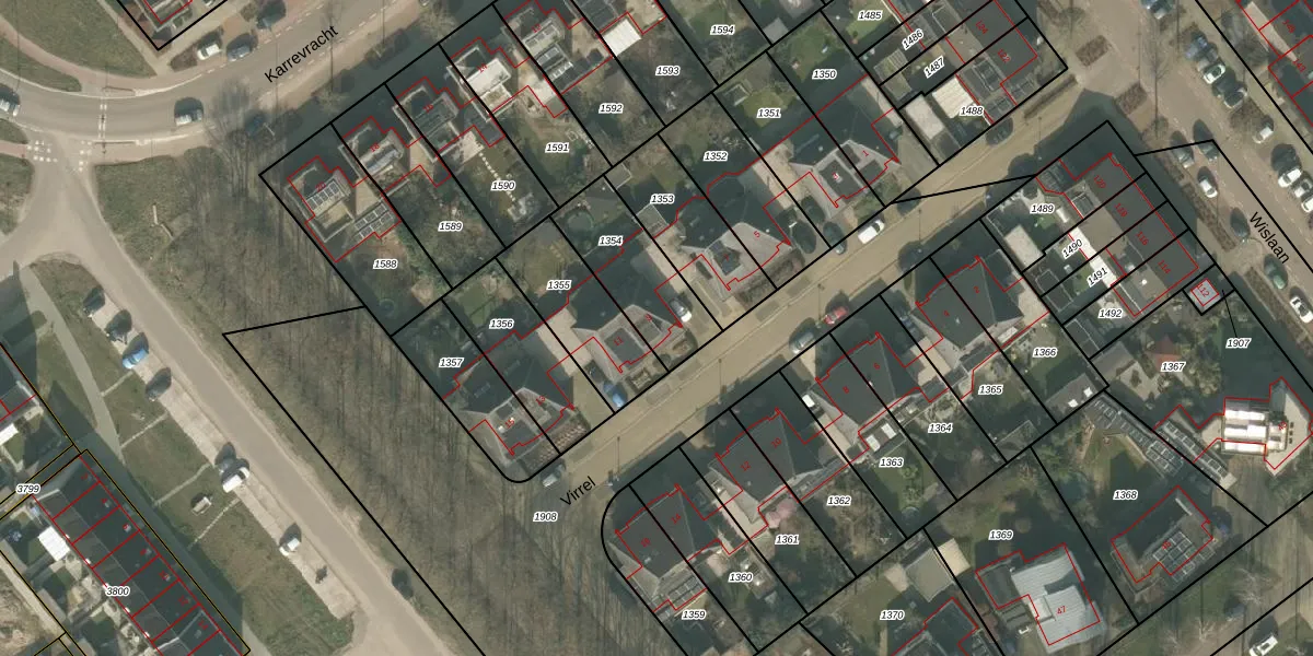 Het perceel waarop Virrel 9 staat heeft een oppervlakte van 312 m². Dit is een groot perceel. De perceeloppervlakte wordt geregistreerd door het Kadaster. Gedetailleerde informatie over de maten van dit perceel kunt u vinden in het rapport Kadastrale kaart met maatvoering van Virrel 9.