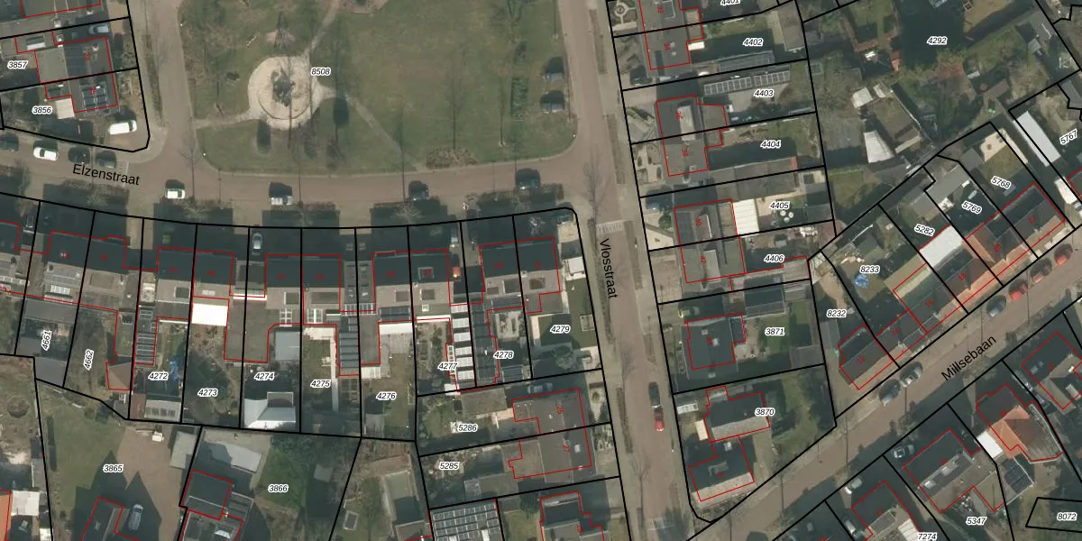 Het perceel waarop Vlosstraat 23 staat heeft een oppervlakte van 377 m². Dit is een groot perceel. De perceeloppervlakte wordt geregistreerd door het Kadaster. Gedetailleerde informatie over de maten van dit perceel kunt u vinden in het rapport Kadastrale kaart met maatvoering van Vlosstraat 23.