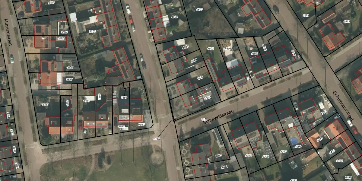 Gebruik de zoekbalk of klik op een perceel voor informatie over de adressen binnen dit perceel.