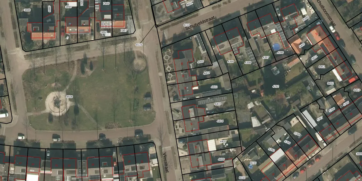 Het perceel waarop Vlosstraat 34 staat heeft een oppervlakte van 353 m². Dit is een groot perceel. De perceeloppervlakte wordt geregistreerd door het Kadaster. Gedetailleerde informatie over de maten van dit perceel kunt u vinden in het rapport Kadastrale kaart met maatvoering van Vlosstraat 34.