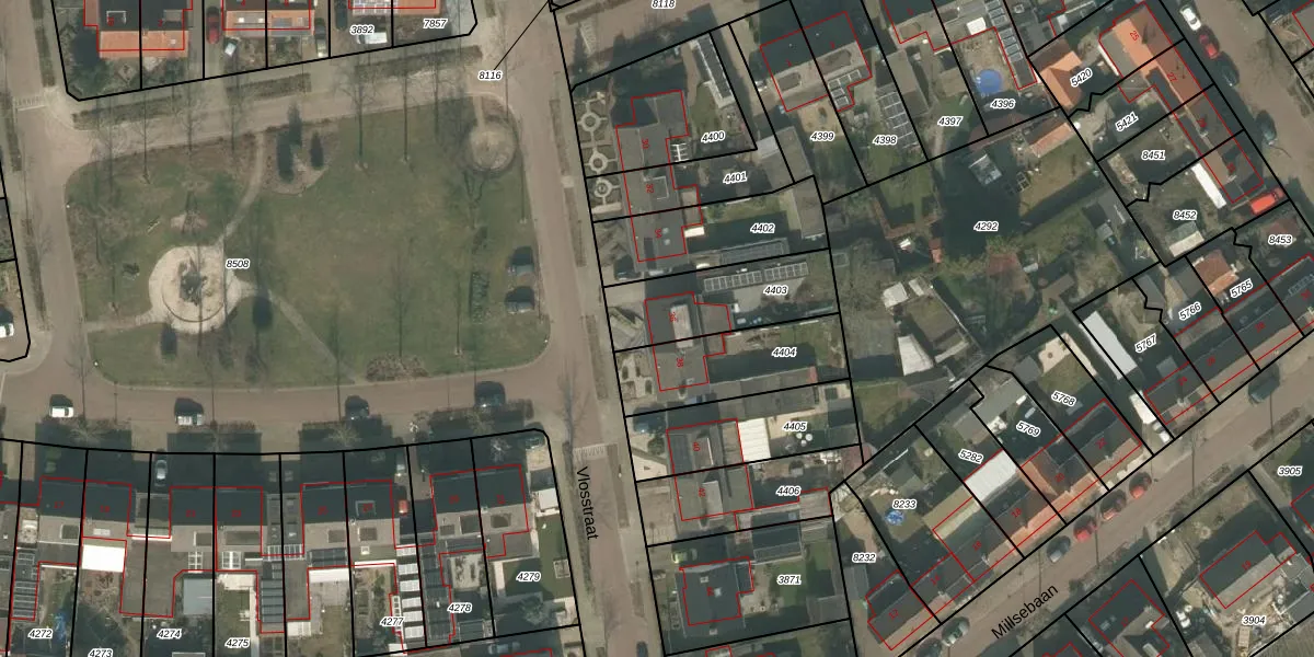 Gebruik de zoekbalk of klik op een perceel voor informatie over de adressen binnen dit perceel.