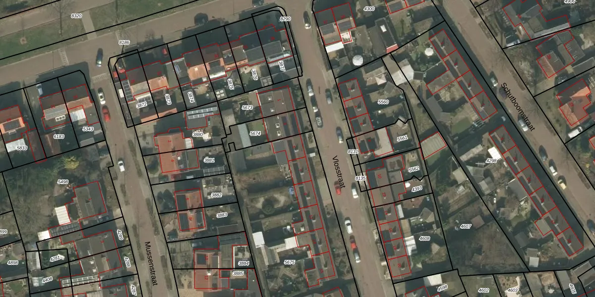 Het perceel waarop Vlosstraat 5 staat heeft een oppervlakte van 2274 m². Dit is een zeer groot perceel. De perceeloppervlakte wordt geregistreerd door het Kadaster. Gedetailleerde informatie over de maten van dit perceel kunt u vinden in het rapport Kadastrale kaart met maatvoering van Vlosstraat 5.
