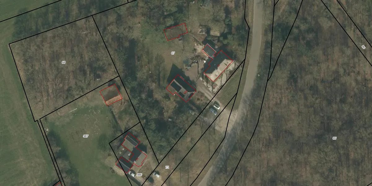 Het adres is gelegen op perceel 67 in de sectie T en de kadastrale gemeente Uden. De kadastrale aanduiding is aldus UDN00-T-67. De oppervlakte van het perceel is 5040 m². Dat is groter dan gemiddeld in Uden, waar de gemiddelde perceeloppervlakte op 3255,33 m² ligt. Het kleinste perceel in de kadastrale gemeente is 0 m² groot. De grootste perceeloppervlakte is 1,06 km². Op het perceel liggen in totaal 2 adressen. De huidige grenzen van het perceel zijn digitaal in de Basisregistratie Kadaster (BRK) geregistreerd op 03-06-2009.