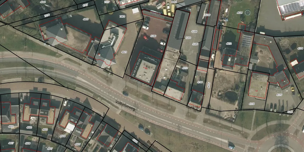 Volkelseweg 4-H is gelegen op kadastraal perceel UDN00C5186. Deze kadastrale aanduiding is uniek en wordt gebruikt door het Kadaster om eigendomsrechten en andere zakelijke rechten vast te leggen. Het perceel maakt onderdeel uit van de kadastrale gemeente Uden.