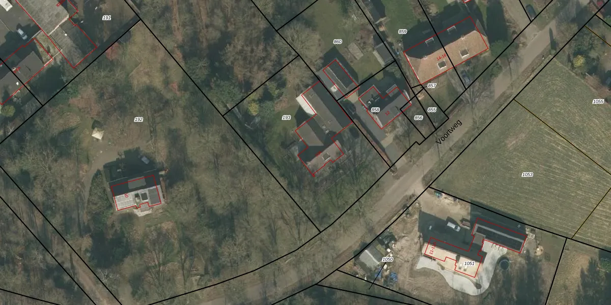Het perceel waarop Voortweg 10-A staat heeft een oppervlakte van 1530 m². Dit is een zeer groot perceel. De perceeloppervlakte wordt geregistreerd door het Kadaster. Gedetailleerde informatie over de maten van dit perceel kunt u vinden in het rapport Kadastrale kaart met maatvoering van Voortweg 10-A.