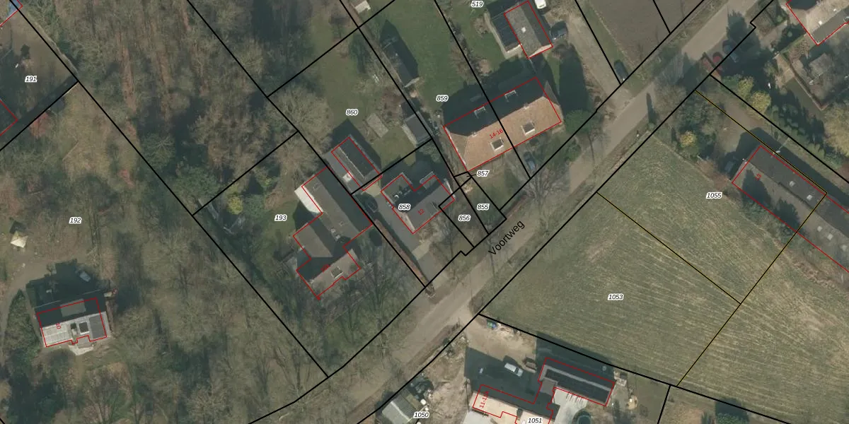 Voortweg 12 is gelegen op kadastraal perceel UDN00R858. Deze kadastrale aanduiding is uniek en wordt gebruikt door het Kadaster om eigendomsrechten en andere zakelijke rechten vast te leggen. Het perceel maakt onderdeel uit van de kadastrale gemeente Uden.