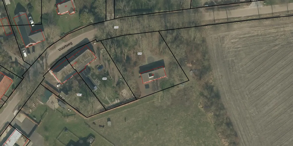 Voortweg 33 is gelegen op kadastraal perceel UDN00R609. Deze kadastrale aanduiding is uniek en wordt gebruikt door het Kadaster om eigendomsrechten en andere zakelijke rechten vast te leggen. Het perceel maakt onderdeel uit van de kadastrale gemeente Uden.