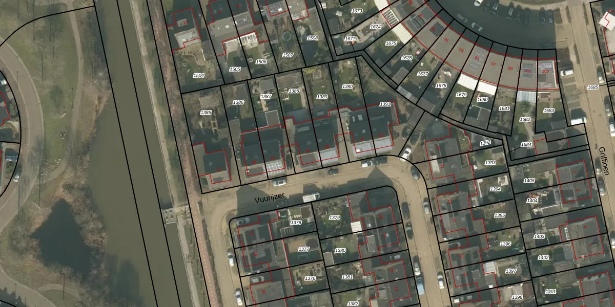 Gebruik de zoekbalk of klik op een perceel voor informatie over de adressen binnen dit perceel.