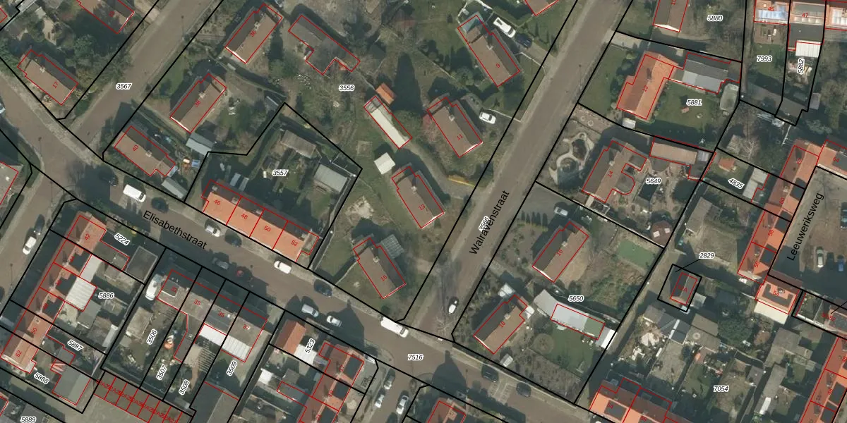 Het perceel waarop Walravenstraat 13 staat heeft een oppervlakte van 5650 m². Dit is een zeer groot perceel. De perceeloppervlakte wordt geregistreerd door het Kadaster. Gedetailleerde informatie over de maten van dit perceel kunt u vinden in het rapport Kadastrale kaart met maatvoering van Walravenstraat 13.
