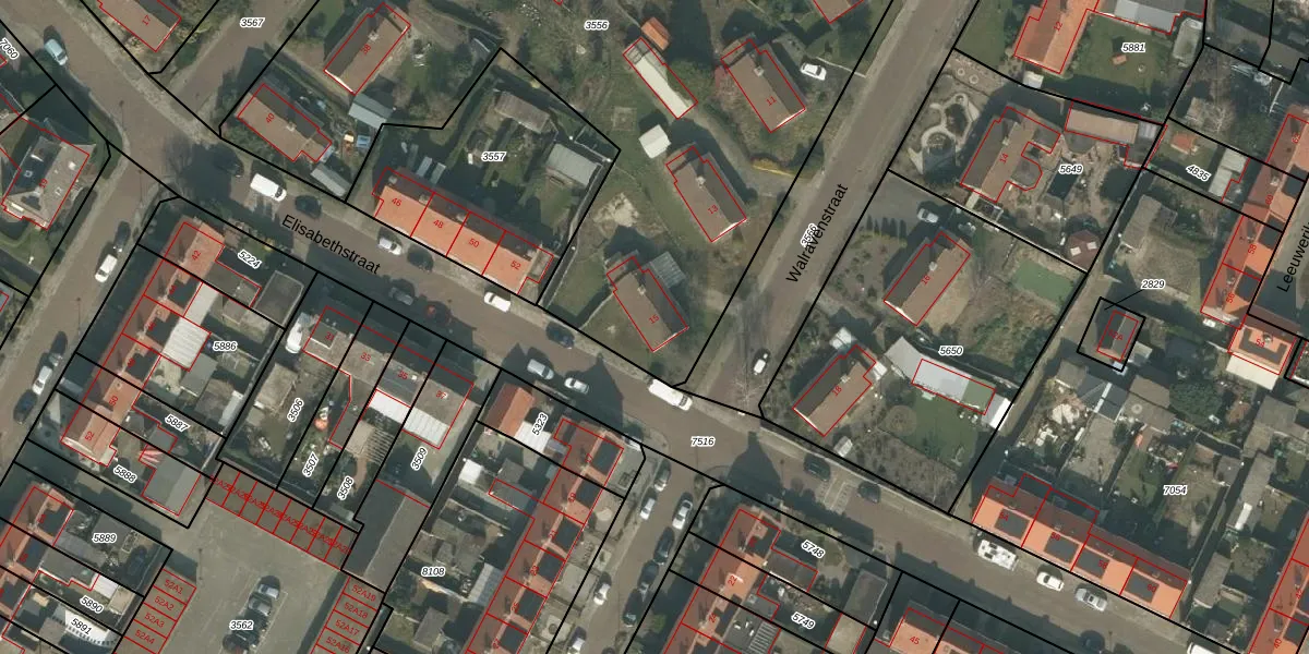 Het perceel waarop Walravenstraat 15 staat heeft een oppervlakte van 5650 m². Dit is een zeer groot perceel. De perceeloppervlakte wordt geregistreerd door het Kadaster. Gedetailleerde informatie over de maten van dit perceel kunt u vinden in het rapport Kadastrale kaart met maatvoering van Walravenstraat 15.