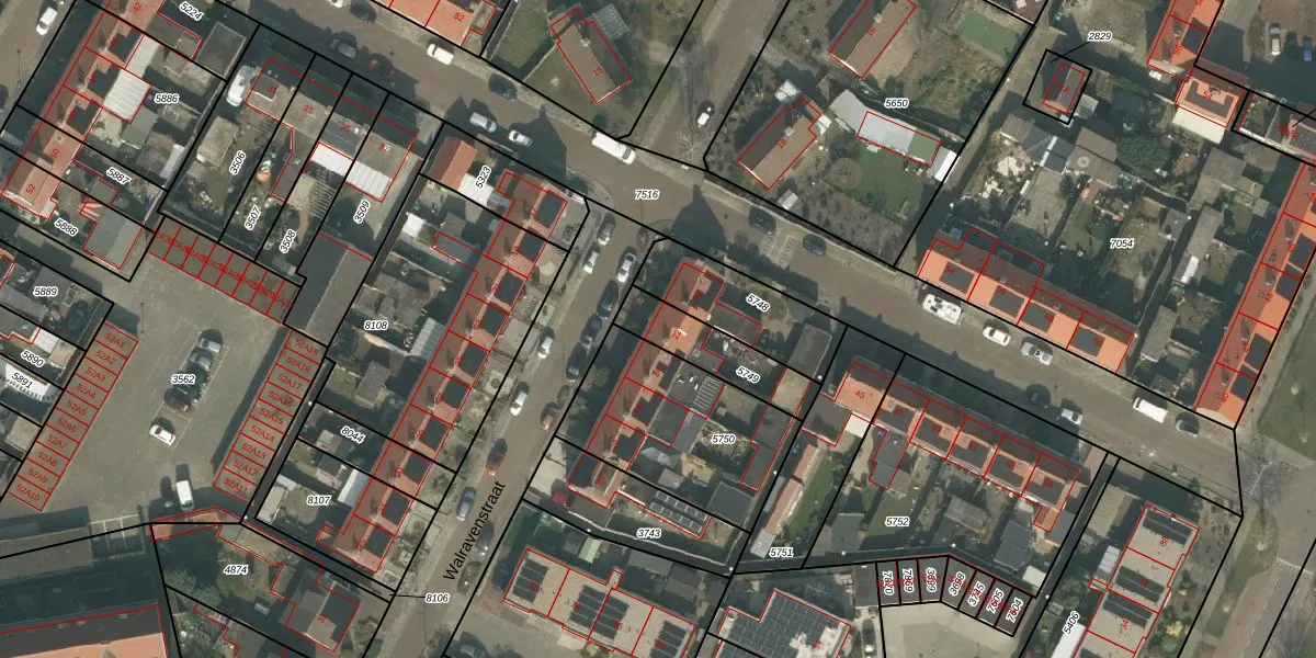 Gebruik de zoekbalk of klik op een perceel voor informatie over de adressen binnen dit perceel.