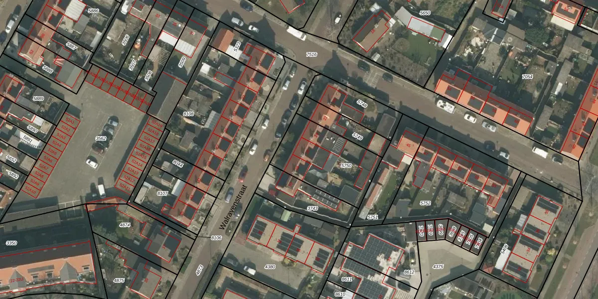 Het perceel waarop Walravenstraat 26 staat heeft een oppervlakte van 629 m². Dit is een groot perceel. De perceeloppervlakte wordt geregistreerd door het Kadaster. Gedetailleerde informatie over de maten van dit perceel kunt u vinden in het rapport Kadastrale kaart met maatvoering van Walravenstraat 26.