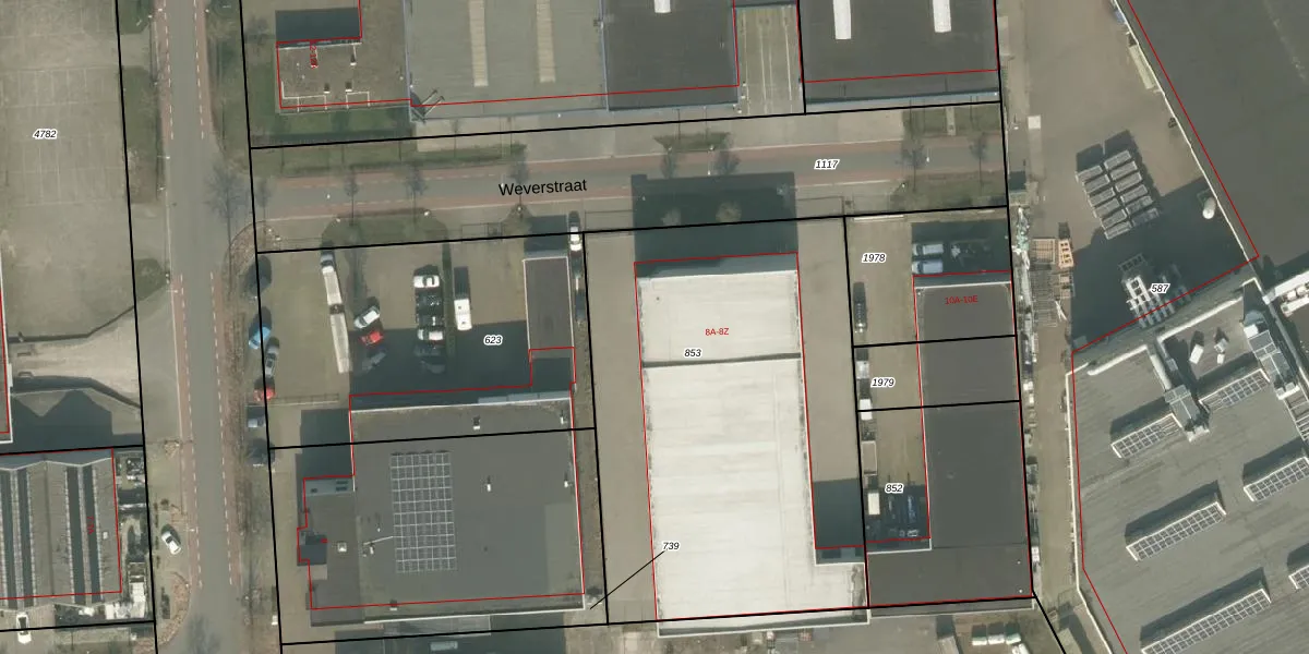 Het perceel waarop Weverstraat 8-B staat heeft een oppervlakte van 2405 m². Dit is een zeer groot perceel. De perceeloppervlakte wordt geregistreerd door het Kadaster. Gedetailleerde informatie over de maten van dit perceel kunt u vinden in het rapport Kadastrale kaart met maatvoering van Weverstraat 8-B.