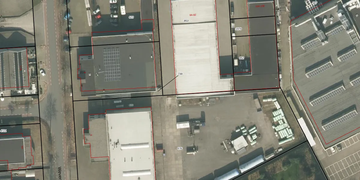 Het perceel waarop Weverstraat 8-M staat heeft een oppervlakte van 2405 m². Dit is een zeer groot perceel. De perceeloppervlakte wordt geregistreerd door het Kadaster. Gedetailleerde informatie over de maten van dit perceel kunt u vinden in het rapport Kadastrale kaart met maatvoering van Weverstraat 8-M.