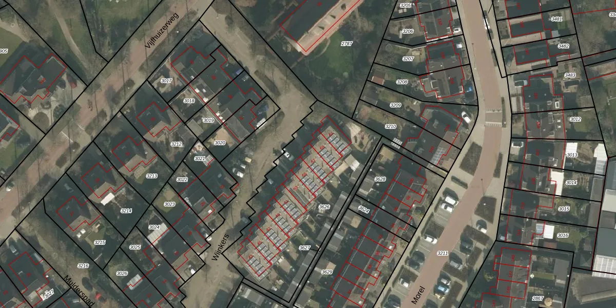 Het perceel waarop Wijnkers 57 staat heeft een oppervlakte van 1565 m². Dit is een zeer groot perceel. De perceeloppervlakte wordt geregistreerd door het Kadaster. Gedetailleerde informatie over de maten van dit perceel kunt u vinden in het rapport Kadastrale kaart met maatvoering van Wijnkers 57.