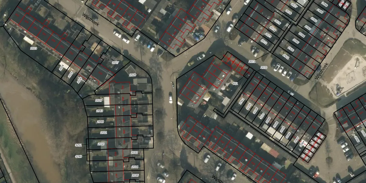 Het perceel waarop Wijsthoek 301 staat heeft een oppervlakte van 3945 m². Dit is een zeer groot perceel. De perceeloppervlakte wordt geregistreerd door het Kadaster. Gedetailleerde informatie over de maten van dit perceel kunt u vinden in het rapport Kadastrale kaart met maatvoering van Wijsthoek 301.