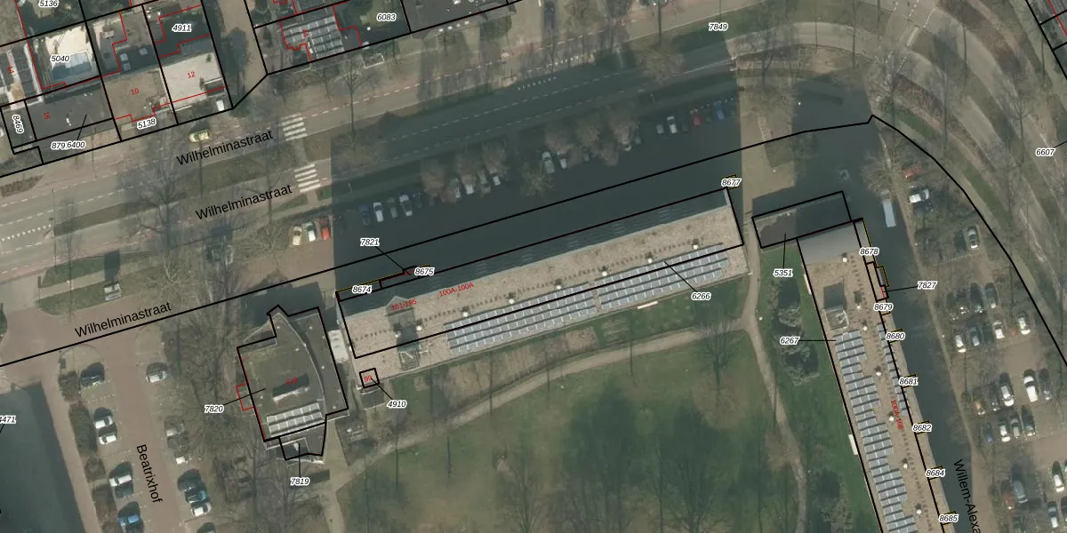 Het perceel waarop Wilhelminastraat 139 staat heeft een oppervlakte van 843 m². Dit is een groot perceel. De perceeloppervlakte wordt geregistreerd door het Kadaster. Gedetailleerde informatie over de maten van dit perceel kunt u vinden in het rapport Kadastrale kaart met maatvoering van Wilhelminastraat 139.