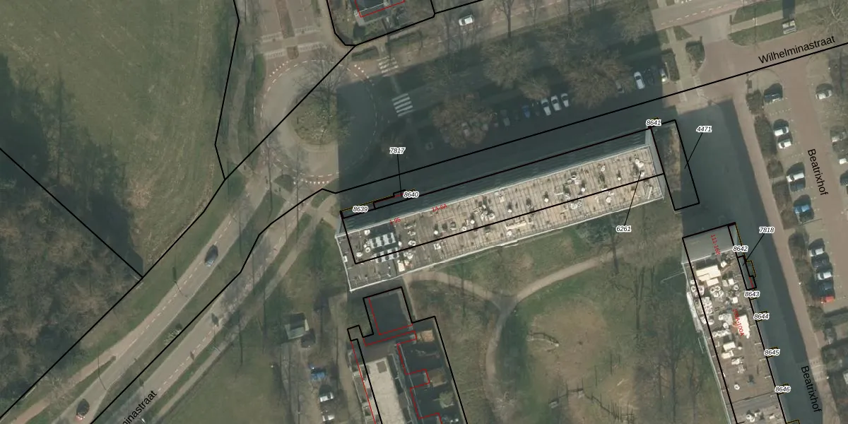 Het perceel waarop Wilhelminastraat 35 staat heeft een oppervlakte van 843 m². Dit is een groot perceel. De perceeloppervlakte wordt geregistreerd door het Kadaster. Gedetailleerde informatie over de maten van dit perceel kunt u vinden in het rapport Kadastrale kaart met maatvoering van Wilhelminastraat 35.