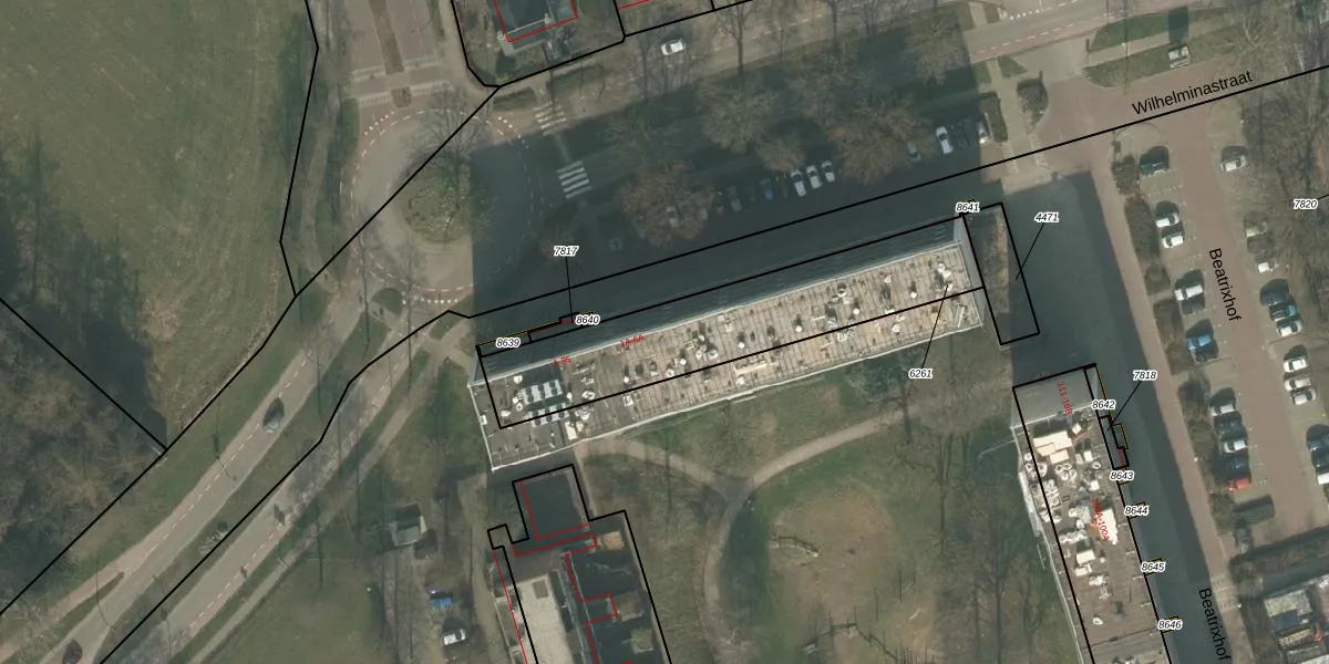 Het perceel waarop Wilhelminastraat 37 staat heeft een oppervlakte van 843 m². Dit is een groot perceel. De perceeloppervlakte wordt geregistreerd door het Kadaster. Gedetailleerde informatie over de maten van dit perceel kunt u vinden in het rapport Kadastrale kaart met maatvoering van Wilhelminastraat 37.