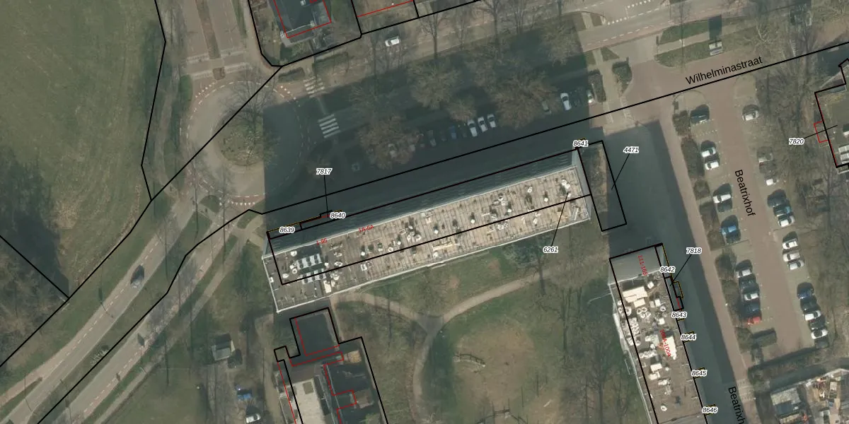 Het perceel waarop Wilhelminastraat 39 staat heeft een oppervlakte van 843 m². Dit is een groot perceel. De perceeloppervlakte wordt geregistreerd door het Kadaster. Gedetailleerde informatie over de maten van dit perceel kunt u vinden in het rapport Kadastrale kaart met maatvoering van Wilhelminastraat 39.