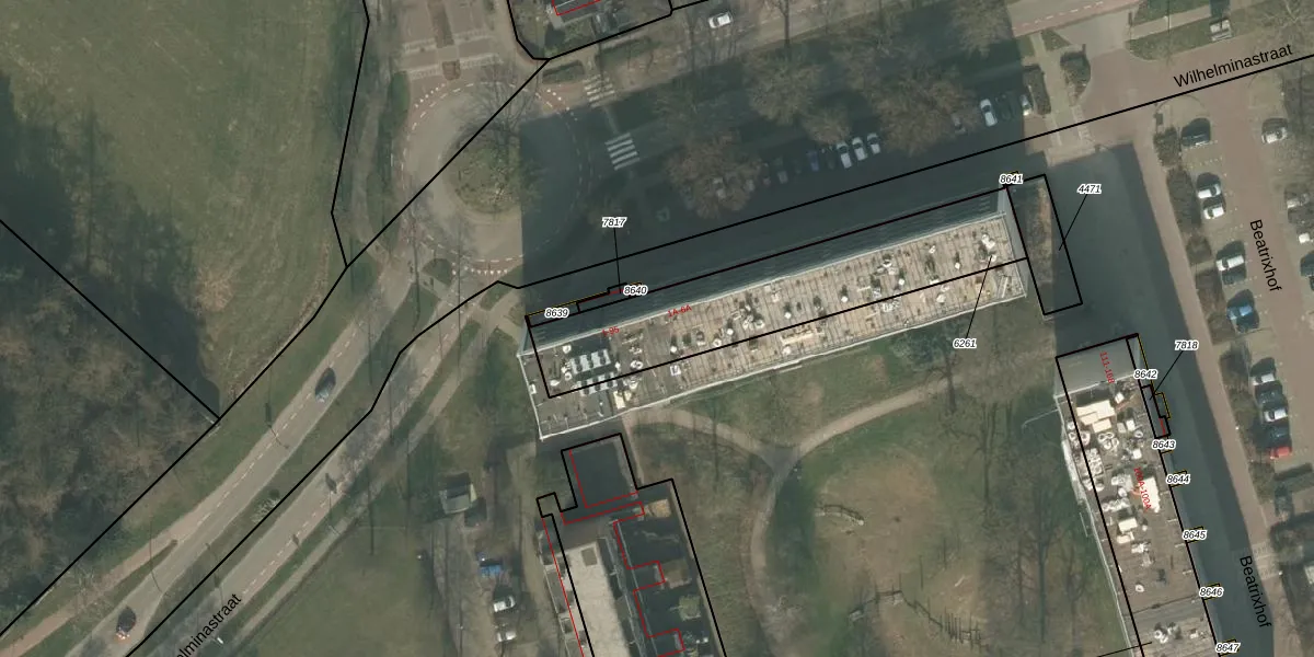 Het perceel waarop Wilhelminastraat 51 staat heeft een oppervlakte van 843 m². Dit is een groot perceel. De perceeloppervlakte wordt geregistreerd door het Kadaster. Gedetailleerde informatie over de maten van dit perceel kunt u vinden in het rapport Kadastrale kaart met maatvoering van Wilhelminastraat 51.