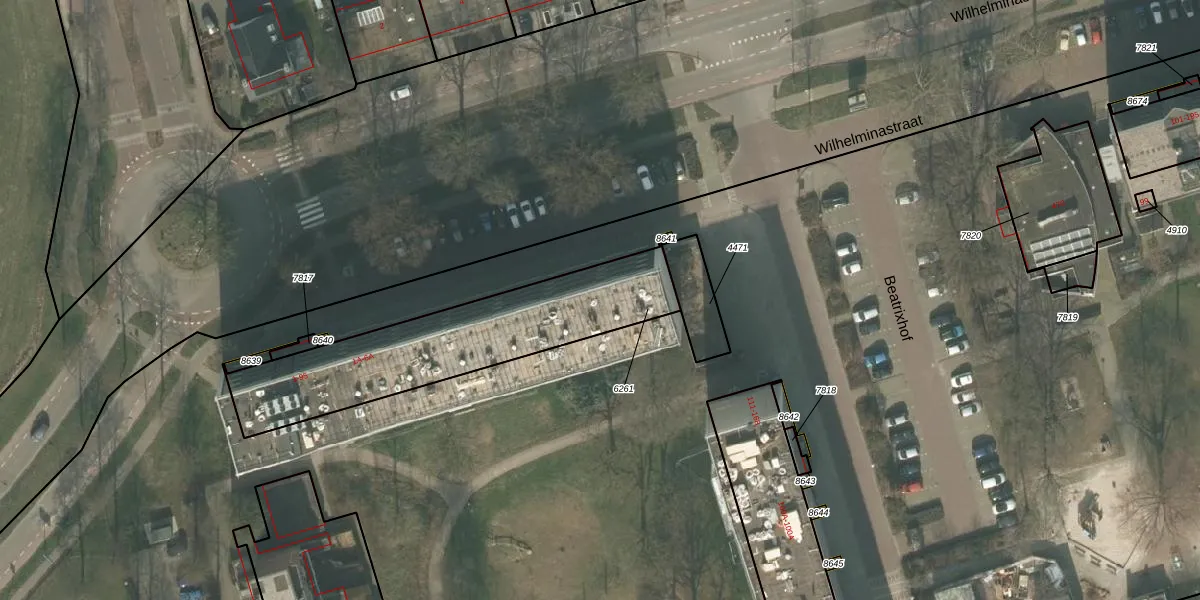Het perceel waarop Wilhelminastraat 61 staat heeft een oppervlakte van 843 m². Dit is een groot perceel. De perceeloppervlakte wordt geregistreerd door het Kadaster. Gedetailleerde informatie over de maten van dit perceel kunt u vinden in het rapport Kadastrale kaart met maatvoering van Wilhelminastraat 61.