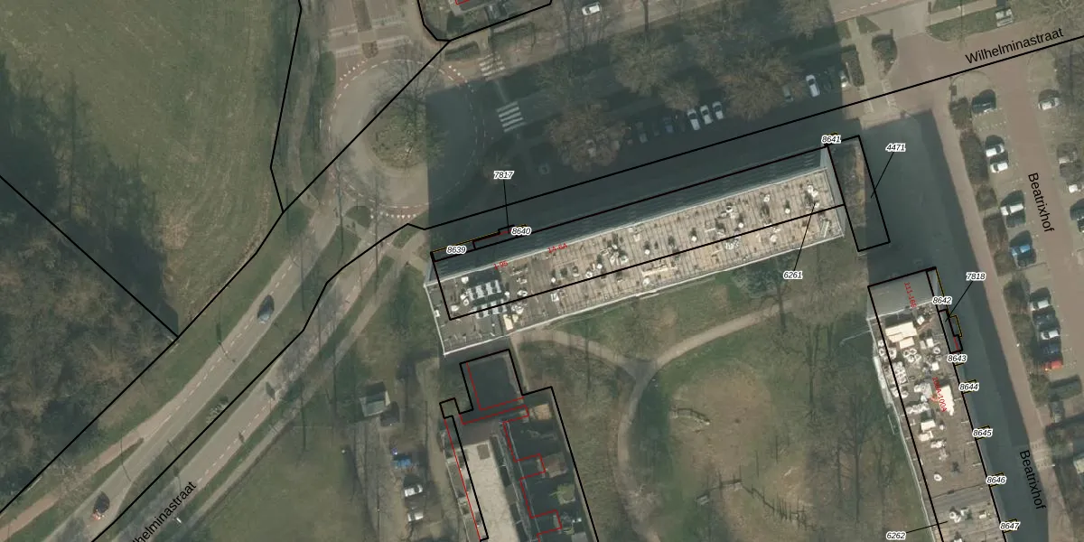 Het perceel waarop Wilhelminastraat 67 staat heeft een oppervlakte van 843 m². Dit is een groot perceel. De perceeloppervlakte wordt geregistreerd door het Kadaster. Gedetailleerde informatie over de maten van dit perceel kunt u vinden in het rapport Kadastrale kaart met maatvoering van Wilhelminastraat 67.