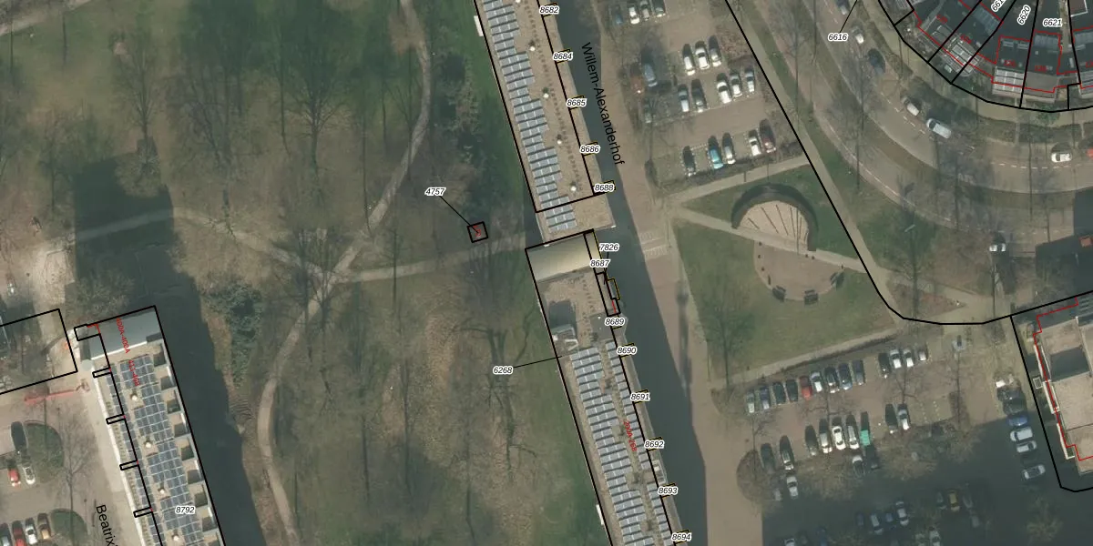Willem-Alexanderhof 261 is gelegen op kadastraal perceel UDN00M6268. Deze kadastrale aanduiding is uniek en wordt gebruikt door het Kadaster om eigendomsrechten en andere zakelijke rechten vast te leggen. Het perceel maakt onderdeel uit van de kadastrale gemeente Uden.
