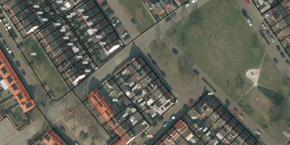 Het perceel waarop Willemstraat 3 staat heeft een oppervlakte van 148 m². Dit is een middelgroot perceel. De perceeloppervlakte wordt geregistreerd door het Kadaster. Gedetailleerde informatie over de maten van dit perceel kunt u vinden in het rapport Kadastrale kaart met maatvoering van Willemstraat 3.