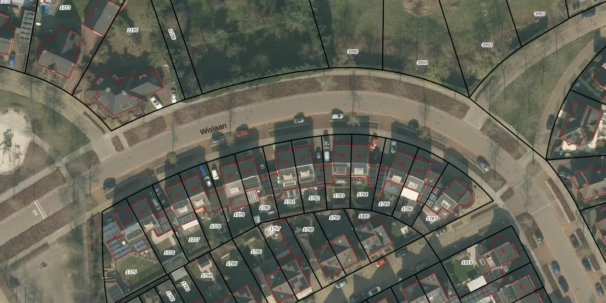 Het perceel waarop Wislaan 237 staat heeft een oppervlakte van 217 m². Dit is een middelgroot perceel. De perceeloppervlakte wordt geregistreerd door het Kadaster. Gedetailleerde informatie over de maten van dit perceel kunt u vinden in het rapport Kadastrale kaart met maatvoering van Wislaan 237.