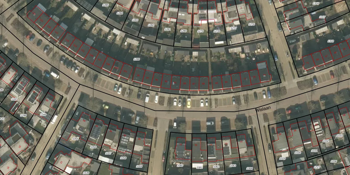 Het perceel waarop Wislaan 91 staat heeft een oppervlakte van 4024 m². Dit is een zeer groot perceel. De perceeloppervlakte wordt geregistreerd door het Kadaster. Gedetailleerde informatie over de maten van dit perceel kunt u vinden in het rapport Kadastrale kaart met maatvoering van Wislaan 91.