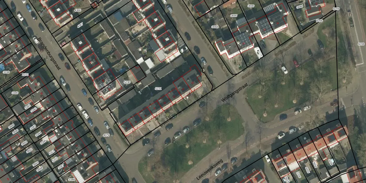 Het perceel waarop Wolfgangstraat 14 staat heeft een oppervlakte van 3413 m². Dit is een zeer groot perceel. De perceeloppervlakte wordt geregistreerd door het Kadaster. Gedetailleerde informatie over de maten van dit perceel kunt u vinden in het rapport Kadastrale kaart met maatvoering van Wolfgangstraat 14.